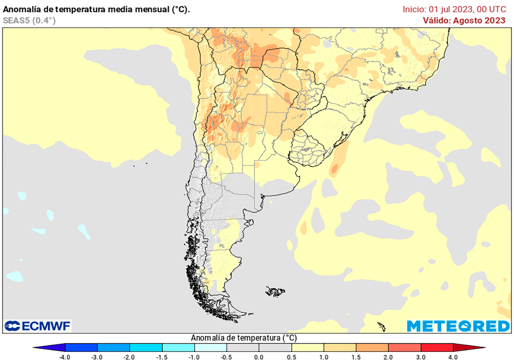 Los meses de junio y julio se mostraron con valores de temperatura promedio superior a lo normal, con pocos ingresos de aire frío significativos y una buena porción del mes con altos registros térmicos. De esta misma manera se espera que transcurra agosto.